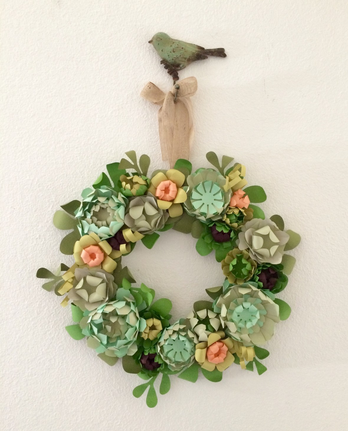 I’m a HUGE fan of Paper Source! I am in love with their craft kits, specifically their wreath kits. Comes with everything you you need. The pieces are perforated and you need to remove them from their page, the wreath backing (a cardboard circle), many double stick squares, and a ribbon to hang it. It helps to have a bone folder to curl the petals.