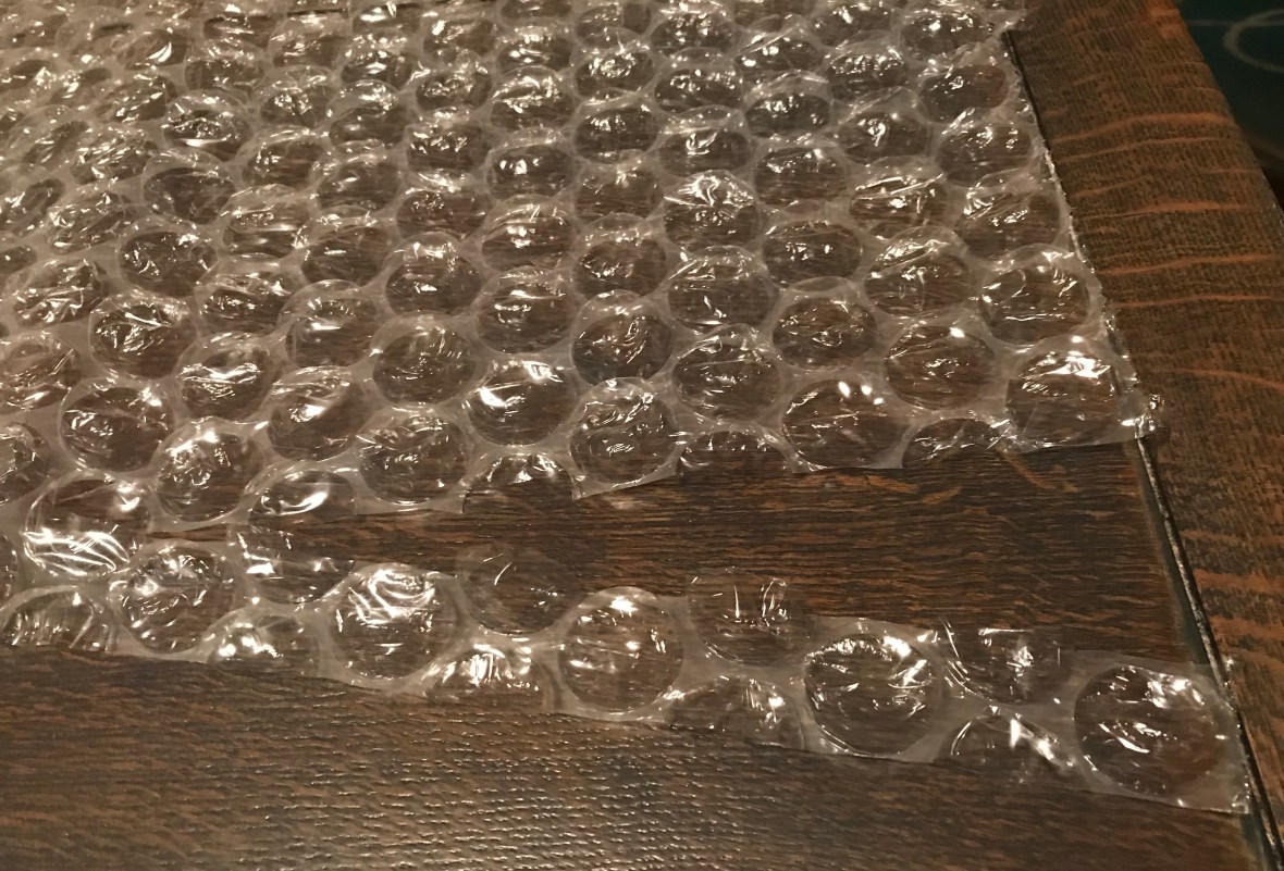 I cut jumbo bubble wrap (new or recycled) into 3 foot strips with the bubbles down the middle (about an inch) this will cut into every other bubble. I taped them at the point of every spoke and half way up. So about 16 strips total.