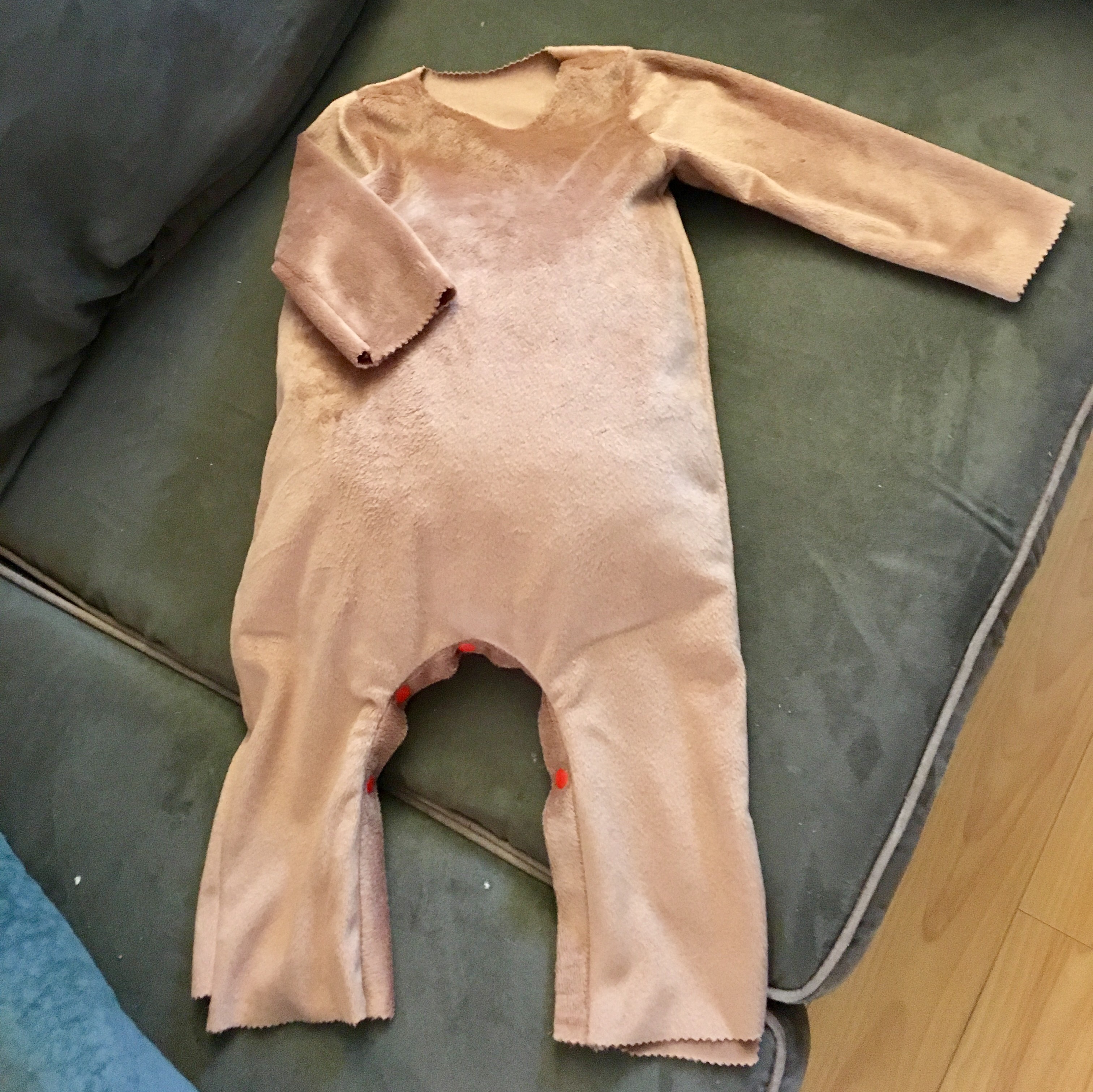 We looked everywhere to buy one but nothing..  not even a brown jump suit or footed pjs to throw stuff together. Not even Amazon or Walmart..  Nada! So we decided a couple weeks before Halloween to just go crazy and start from scratch! Awesome!