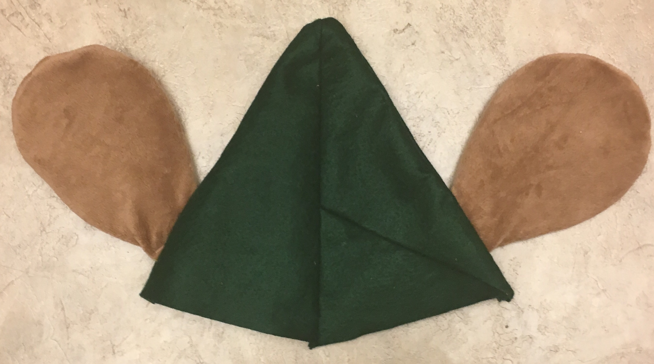 Quick added tail right before trick or treating. Brown felt 5/6″ and as long as you want it to be. I believe I cut 30″long. Sew together like a casing but in one end it will come to a point. I used floral wire from dollar store and fed it through to the top do the tail. I cut a hole in the body butt to feed the wire through and circle it around so it doesn’t like the little guy. I failed this next step but the felt should have been tacked to the wire near the butt so it wouldn’t slide off during the night. Yeah, that happened.