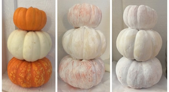 I just couldn’t bring myself to throw away perfectly good pumpkins. They were too small to cook. I had 3 of them and thought what if these made a snowman. I looked it up on Pinterest and of course found some fun tutorials and with a collaboration of different ideas … here’s my version.