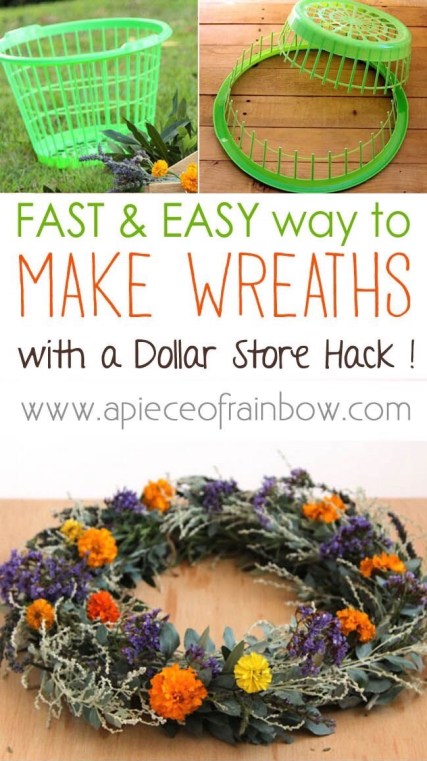 Alas! The hardest and most time-consuming part was done. However, upon lifting it up (even after a day of drying) it turned into an oval. I used a straightened wire hanger (wire hangers are my ultimate craft hack!) to thread through the twine ties. This made the wreath super sturdy. I also bent a small circle hook at the end of the wire for hanging the wreath on the door.