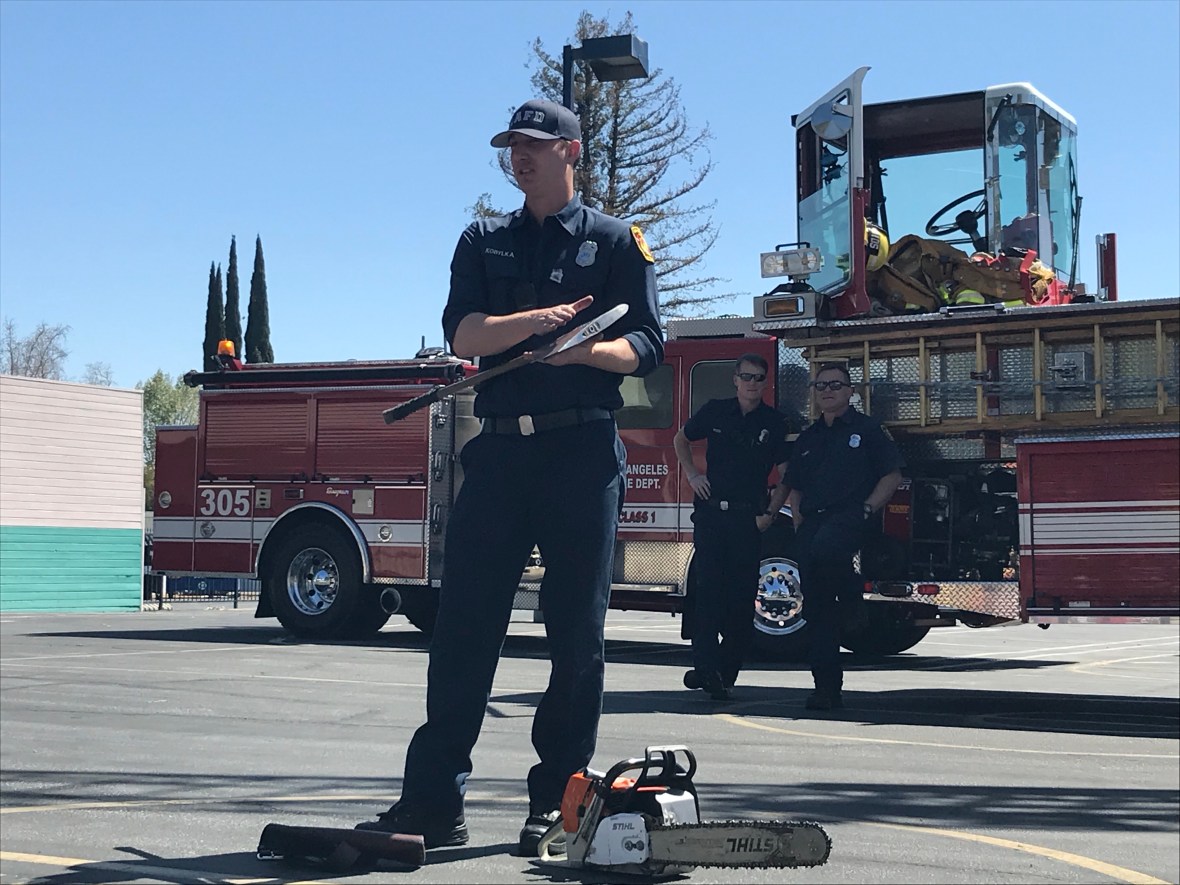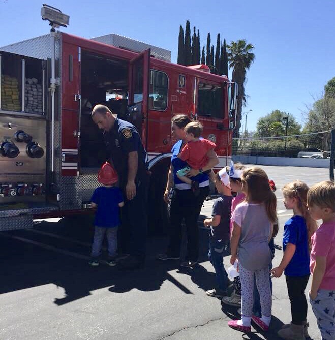 Very fun day for the kids and the teachers/parents too. It’s not every day you get to see the fire trucks, fire fighting gear and tools first hand, ladder extended and sirens blaring π My boys loved going through the back seat of each fire truck!