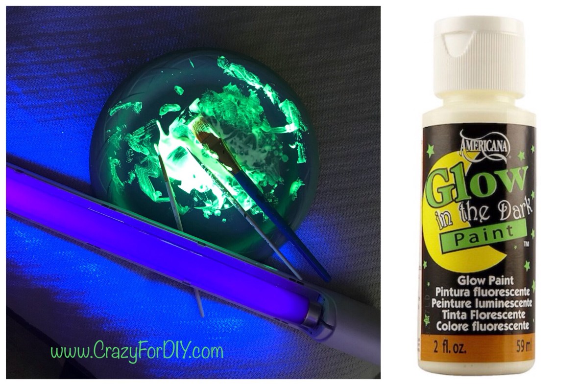 It seemed like it needed something more than the words. I thought it would be cool to paint a sky scape that you can only see at night and best with a black light. I always thought black lights were fun growing up. This is the glow in the dark acrylic paint I used: DecoArt DS50-10 Glow-in-the-Dark Paint, 4-Ounce.