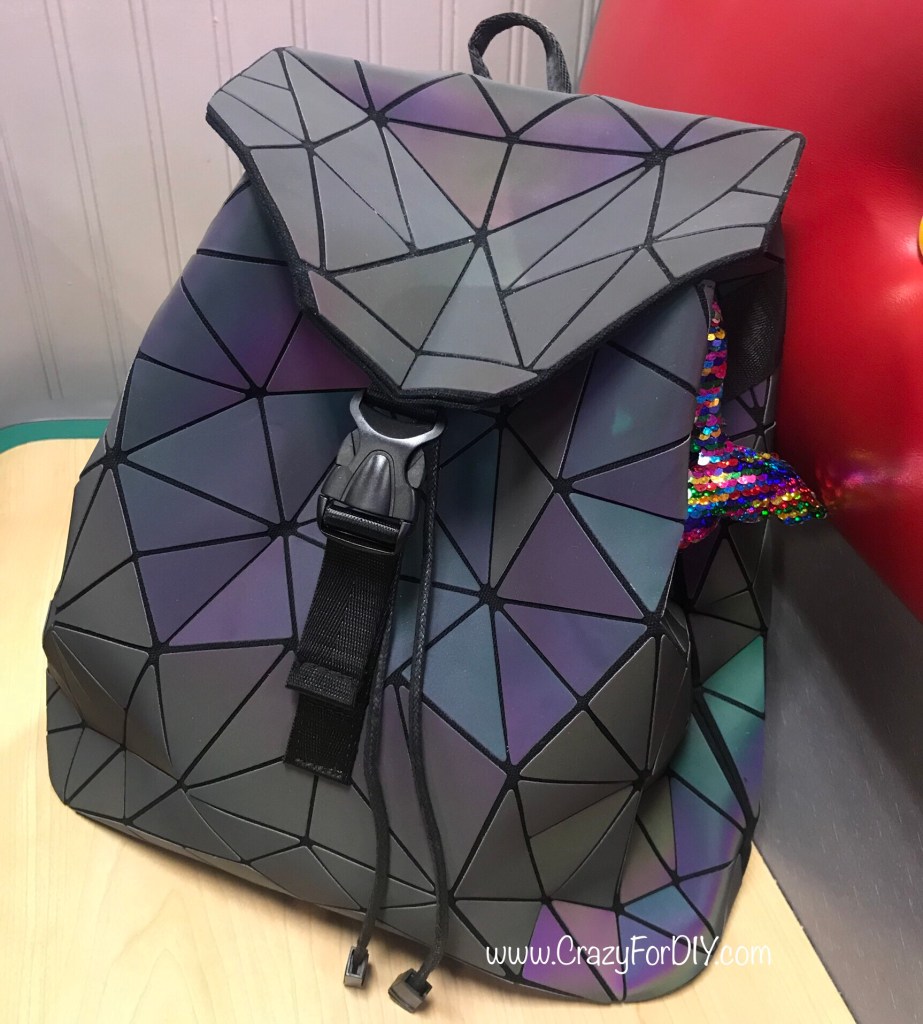 So Amazon to the rescue! This amazing rainbow “reflective” backpack showed up on recommended bags while I was searching for some normal “safe” adult backpacks .. lol.