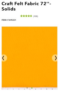 Also, for this large sized hat project, I purchased craft solid gold felt 72” by the yard at $5/yd at Joann’s.