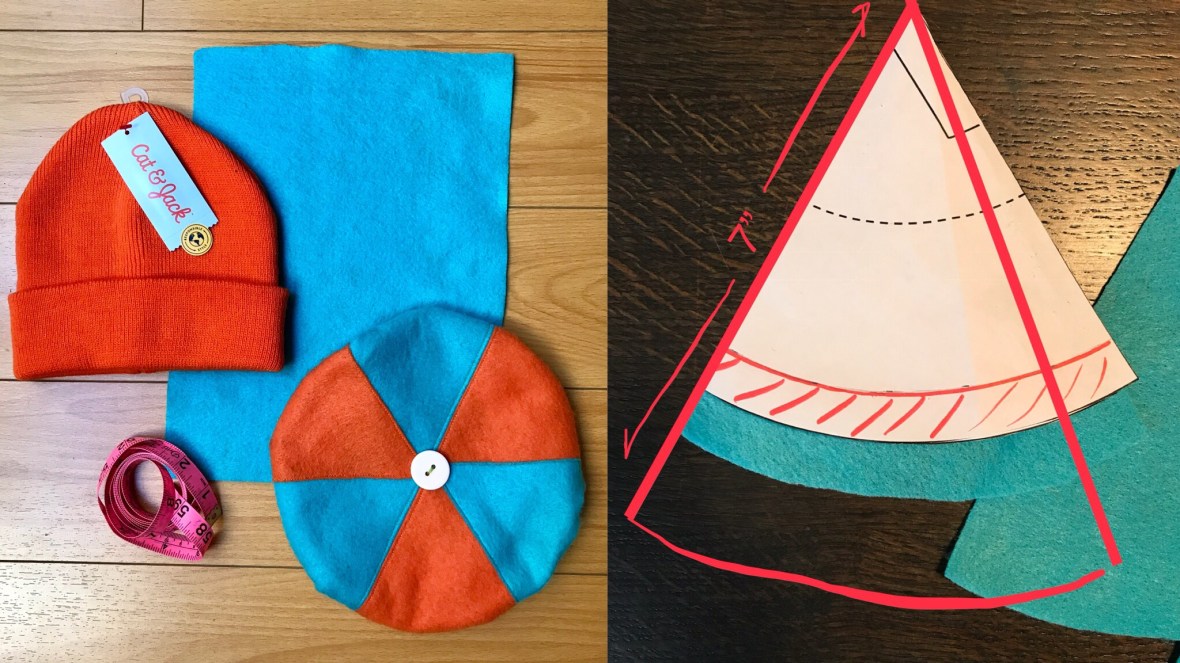 My original tutorial will help you make a toddler or small child size Blippi felt beret hat which is fitting for up to about a 19.5” head measurement
