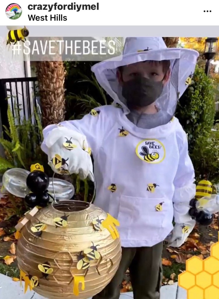 Here’s a fun costume idea for bee fans and for us it was our school mascot. My son won 2nd place in our elementary Halloween costume contest. It was a hit! 🐝